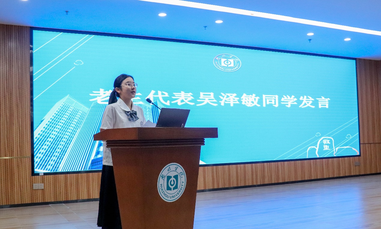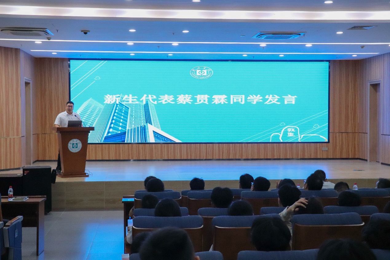 接着,2025级蔡贯霖同学作为新生代表发言,字里行间充满了新同学的朝气与决心,期待在大学舞台上绽放光彩。