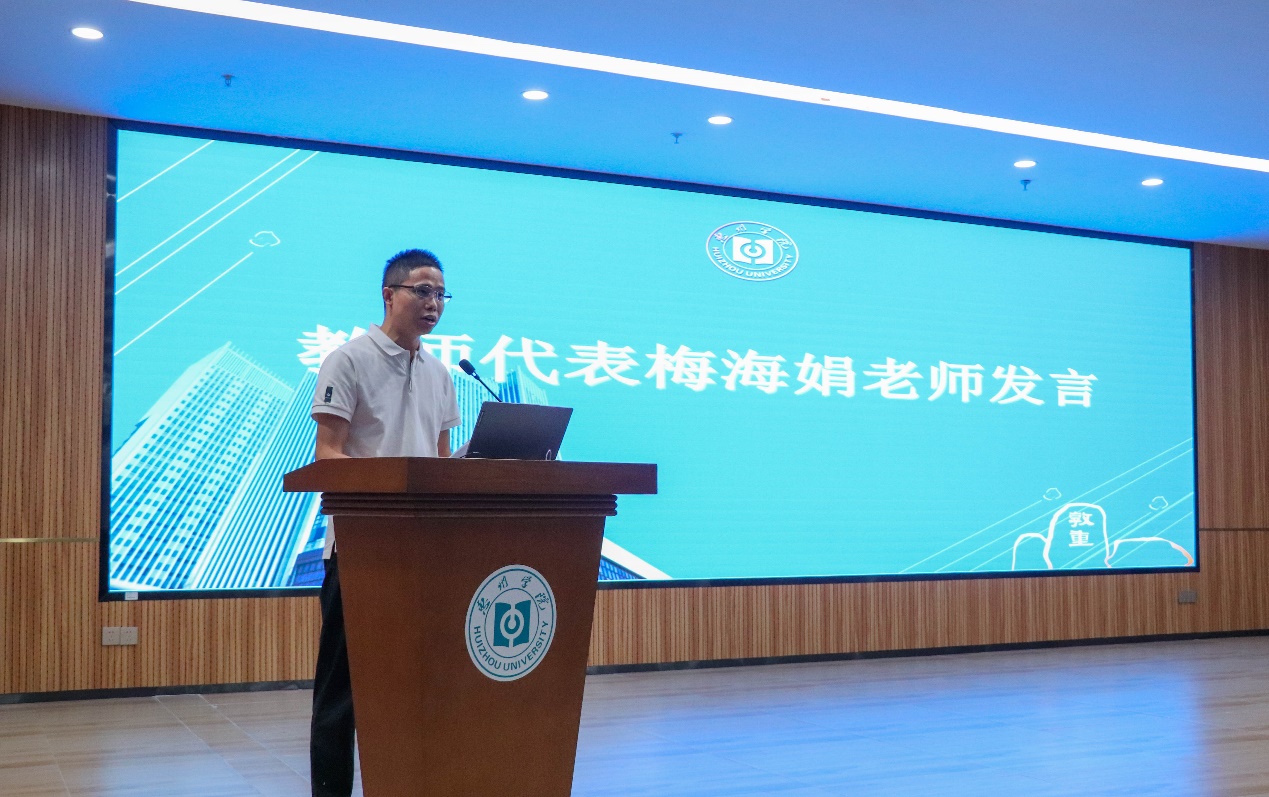随后,梅海娟老师作为教师代表发言,他不但分享了自己的求学感悟,而且就“如何上好大学”向新生提出了建议。