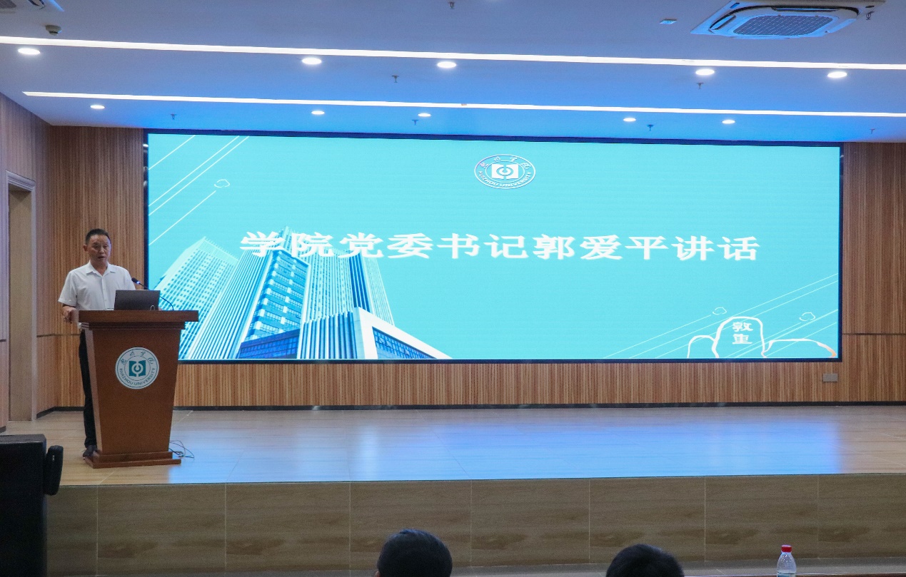 最后,学院党委书记郭爱平做总结讲话,他首先代表学院师生对311名新同学的到来表示热烈欢迎,并在简要介绍惠州产业发展现状的基础上,分别向新同学们分享了自己对“什么是大学”“如何体验大学”和“爱校荣校”等三个热门话题的理解,要求新同学要立大志、成为担当民族复兴重任的时代新人:一是要提高思想境界、开阔视野,二是要求真学问、练真本领,三是要学会做事,四是要追求内外和谐。面对个人学习生活和学院发展中可能遇到的问题,他寄语广大新生要通过自身的努力学习和卓越成就为学校争光,形成“校兴我荣,校衰我耻”的共同体意识。