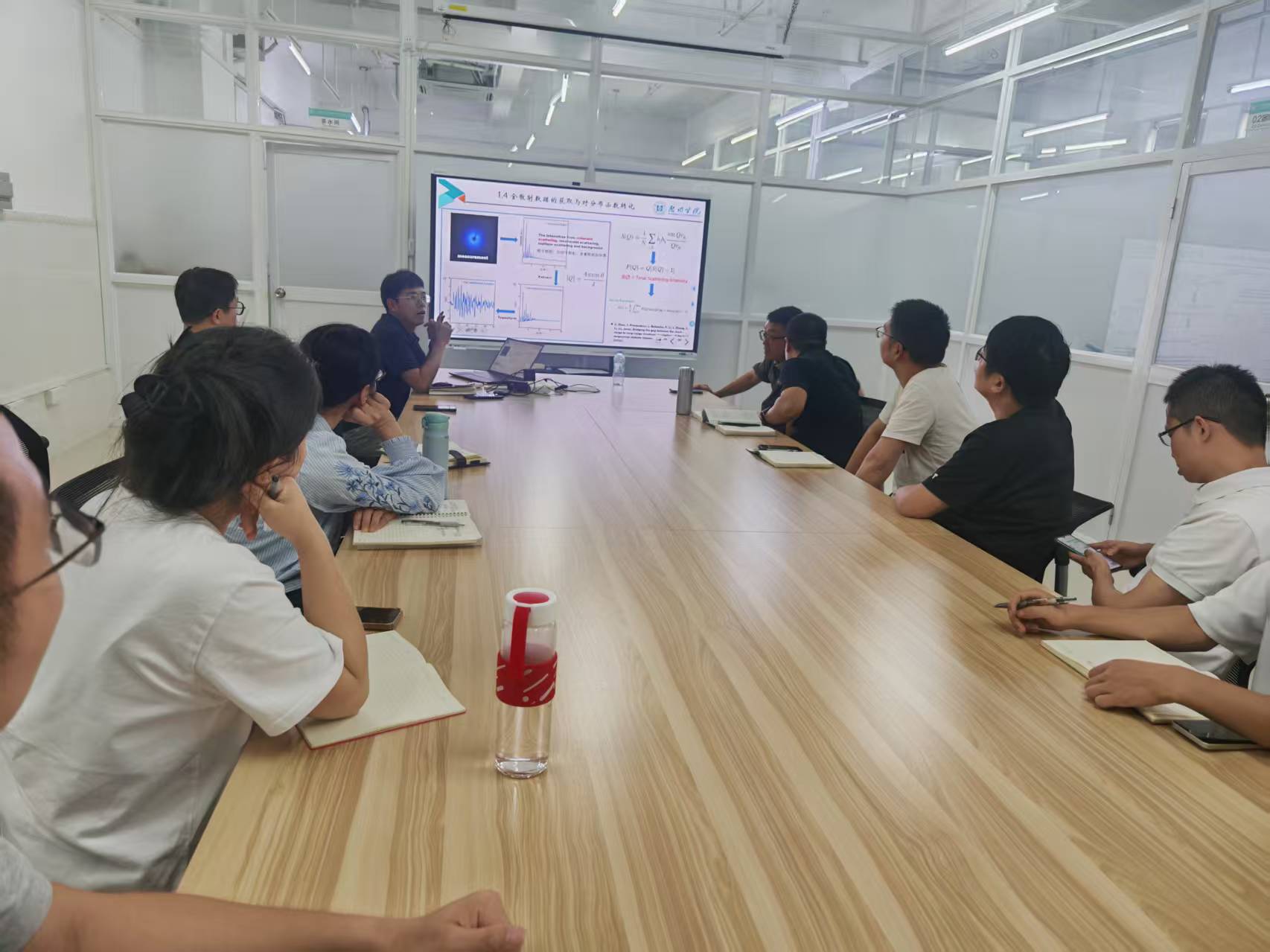 本次研讨会上,罗智宏博士作了题为《弛豫铁电体的局域结构与电卡效应》的学术报告。报告中,他系统介绍了局域结构的基本特征、列举了局域结构与性能关联的重要案例,并具体讲述了利用中子全散射技术分析钛酸钡基弛豫铁电体的研究工作。同时阐述了其电卡效应的物理机制与主要特性参量,分析了成分起伏、极性纳米微区动态行为等因素对材料电热性能的关键影响。罗智宏博士还从结构调控、制备工艺优化以及外场响应特性等多个维度,探讨了高性能弛豫铁电体材料在固态制冷等领域的应用潜力与发展策略。在随后的互动环节中,实验室团队成员就如何通过先进表征技术解析局域结构,以及如何结合理论计算与材料设计来进一步提升材料的电卡性能等问题,展开了热烈而富有成效的交流与讨论。