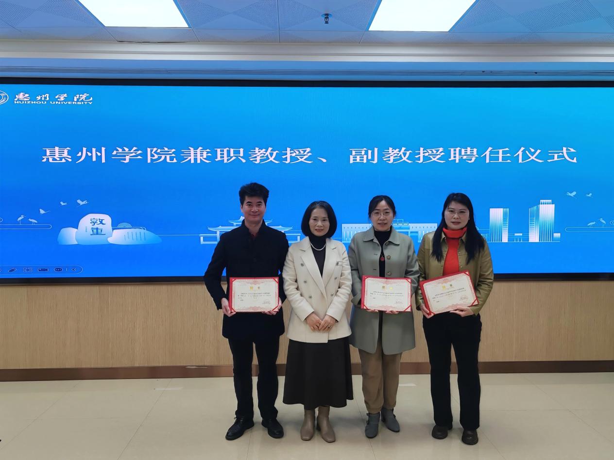 活动还进行了兼职教师聘任仪式,杨细梅、解凤英、黄小文三位教师分别受聘为惠州学院物理学专业兼职教授、副教授。