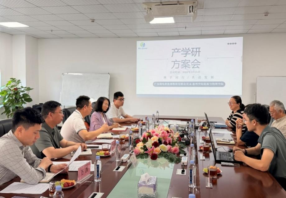 2026年3月25日上午,能源与物理学院党委书记周元洪、院长龚伟平班子一行5人到广东微电新能源股份有限公司回访,公司董事长陈志勇、副总经理罗红兵、研究院副院长童焰及人力资源部负责人参加了回访座谈。